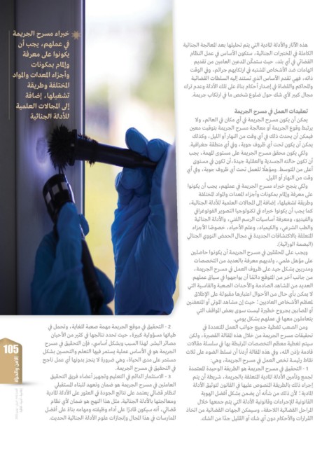 105 - 2التحقيق في موقع الجريمة مهمة صعبة للغاية ،وتحمل في فيمكن أن يحدث ذلك في أي وقت من النهار أو الليل ،وكذلك