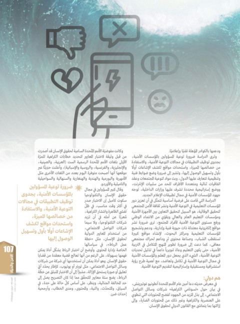 من قبل وثيقة لاختبار المعايير لتحديد خطابات الكراهية للم ّرة بجدوى توظيف التطبيقات في مجالات التوعية الأمنية ،والاستفادة