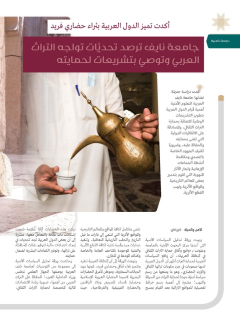 العربية بوصفها الجهاز العلمي لمجلس الديانات السماوية ،وموطن لأعرق الحضارات سياسة أمن ّية جيدة لحماية التراث من السرقة