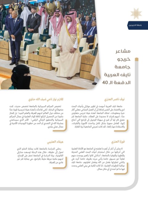 تخصص الجرائم السيبرانية بالجامعة تخصص حديث ،كنت جامعة نايف العربية أسهمت في تطوير مهاراتي وأدوات البحث