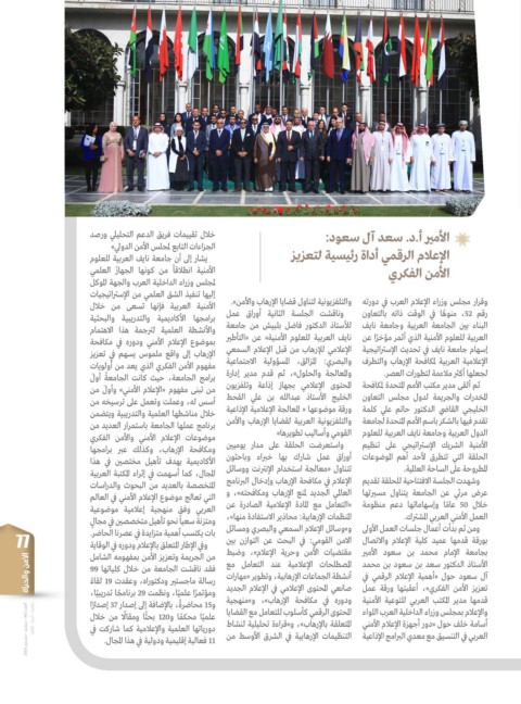 عرض مرئي عن الجامعة يتناول مسيرتها العالمي الجديد لمنع الإرهاب ومكافحته» ،و التي تعالج موضوع الإعلام الأمني في العالم