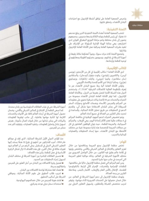 تعزيز التعاون والابتكار في المجالين الشرطي والأمني .وتتلخص رؤيتها
