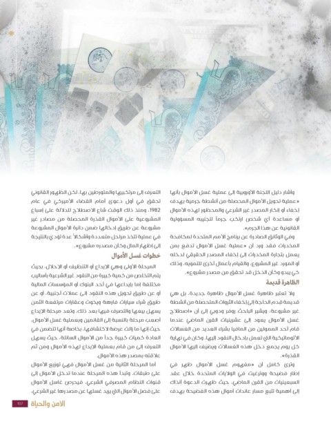 إلى إظهار المال وكأن مصدره مشروع». المخدرات فقد ورد أن «عملية غسل الأموال دتفع بمن