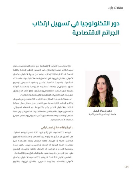 طرأ تحول على الجرائم الاقتصادية مع تطور التكنولوجيا ،حيث دكتورة /هالة فيصل