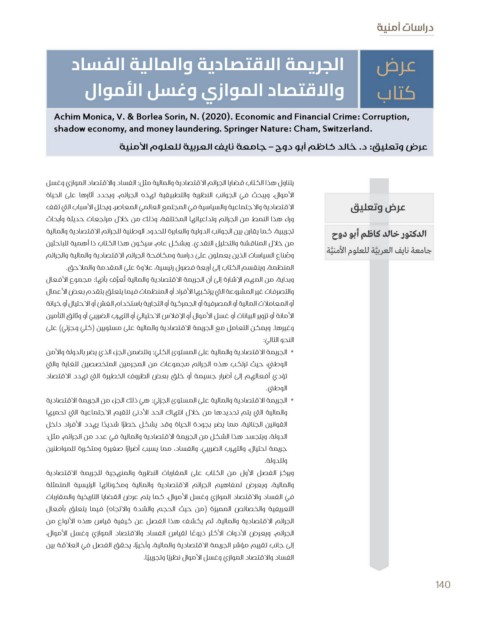 تجريبية ،كما يقارن بين الجوانب الدولية والعابرة للحدود الوطنية للجرائم الاقتصادية والمالية 140