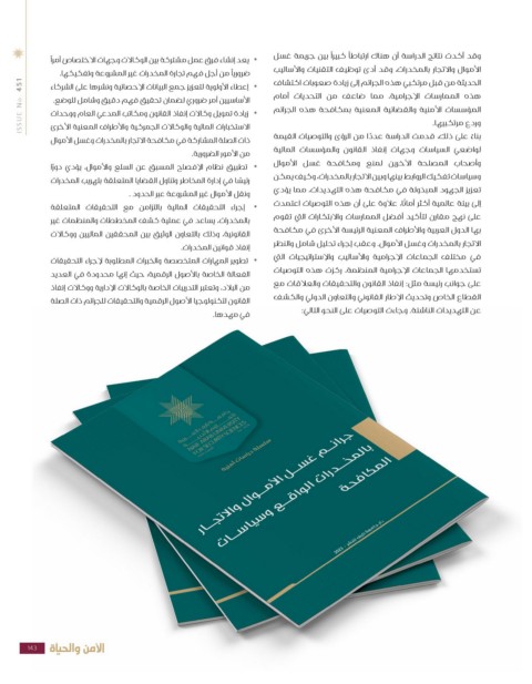 ISSUE No. 451 يعد إنشاء فرق عمل مشتركة بين الوكالات وجهات الاختصاص أمرًًا• وقد أكدت نتائج الدراسة أن هناك ارتباطًًا كبيرًًا بين جريمة غسل