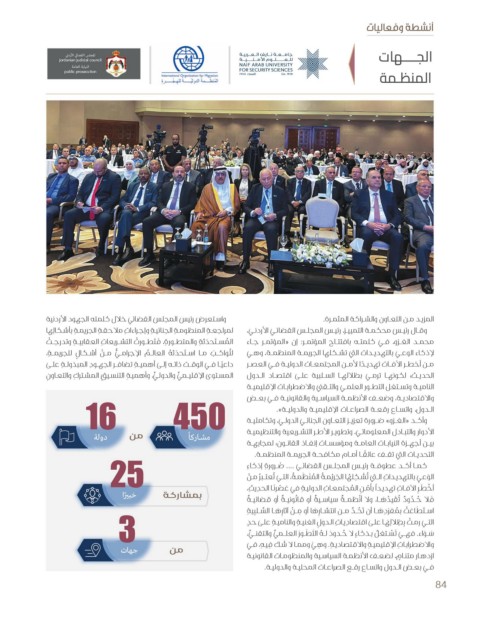 واسـتعرض رئيس المجلس القضائي خلال كلمته الجهود الأردنية المزيـد مـن التعـاون والشـراكة المثمـرة.