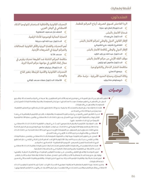 العمـل علـى تطويـر أطـر قانونيـة عربيـة تواكـب التطـورات المرتبطـة بالـذكاء الاصطناعـي ،وتضمـن حمايـة البيانـات