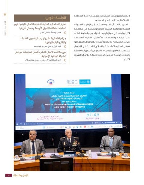 ISSUE No. 451 الجلسة الأولى: الاتجـار بالبشـر وتهريـب المهاجريـن ،ويعـرب عن اعتـزاز المنظمة