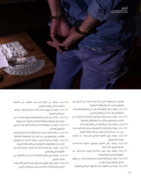 العلاج والرعاية اللاحقة للمدمنين في الوطن العربي. ) 39إعداد دراسة عن ظاهرة غسل الأموال في الدول العربية.