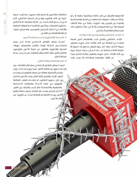 ISSUE No. 453 لمناقشة مشاكلهم أو الحوار البناء معهم ،مما أوجد فجوة الإلكترونية والعيش في ظل علاقات رومانسية خيالية ،أو حتى