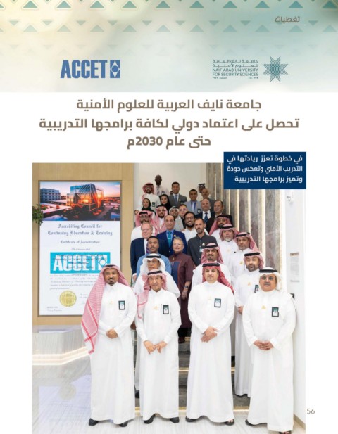 تغطيات جامعة نايف العربية للعلوم الأمنية تحصل على اعتماد دولي لكافة برامجها التدريبية حتى عام 2030م في خطوة تعزز ريادتها في التدريب الأمني وتعكس جودة وتميز برامجها التدريبية 56