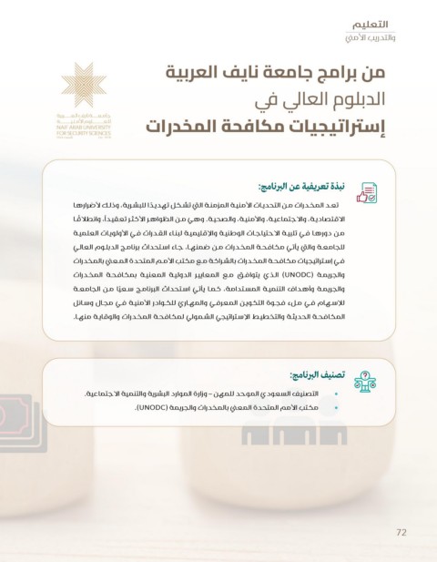 للجامعـة والتي يأتـي مكافحـة المخـدرات مـن ضمنهـا ،جـاء اسـتحداث برنامـج الدبلـوم العالـي