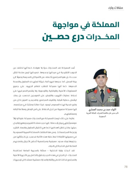ُُتعد المعركة ضد المخدرات حر ًًبا بلا هوادة ،كما أنها تختلف عن اللواء حمد بن محمد العماري