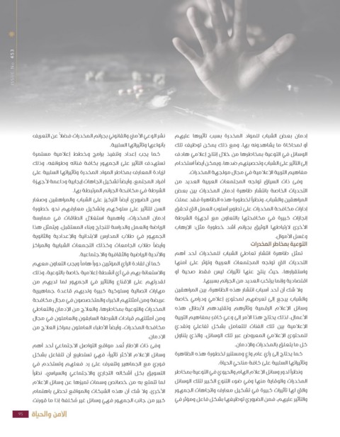 نشر الوعي الأمني والقانوني بجرائم المخدرات فضًا ًل عن التعريف إدمان بعض الشباب للمواد المخدرة بسبب تأثيرها عليهم