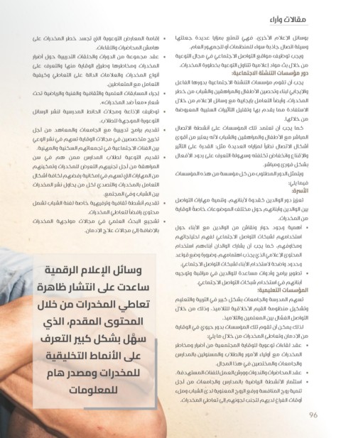 محتوى رافضًًا لتعاطي المخدرات. تعزيز دور الوالدين كقدوة لأبنائهم ،وتنمية مهارات التواصل