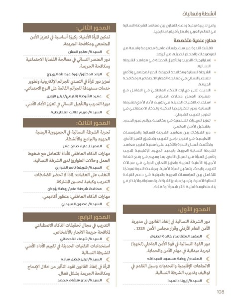 دورة التدريب والتأهيل النسائي في تعزيز الأداء الأمني. للعنصـر النسـائي فـي معالجـة القضايـا الاجتماعيـة ومكافحـة