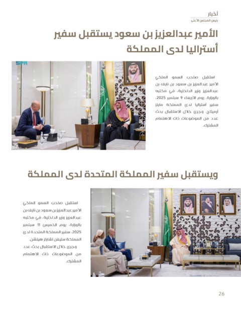 الأمير عبدالعزيز بن سعود يستقبل سفير