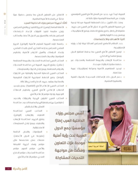 ISSUE No. 454 الانفتاح على التعاون الدولي بما يضمن حضو ًًرا عربًًيا العربية ،ليبدأ عهد جديد من العمل الأمني العربي المؤسسي،