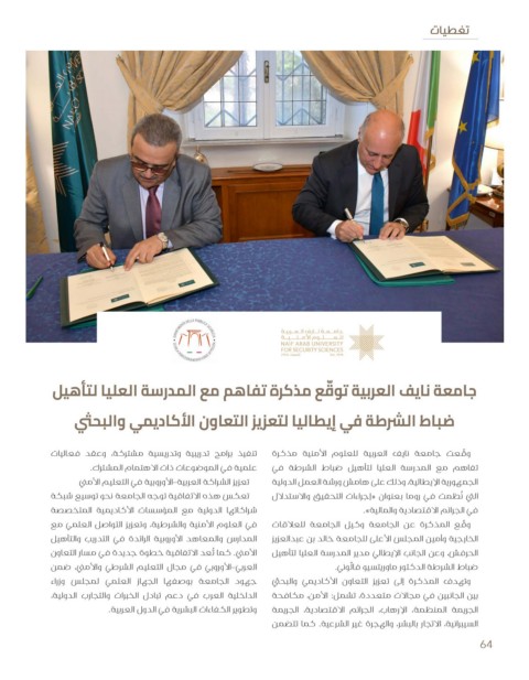 تنفيذ برامج تدريبية وتدريسية مشتركة ،وعقد فعاليات و ّّقعت جامعة نايف العربية للعلوم الأمنية مذكرة